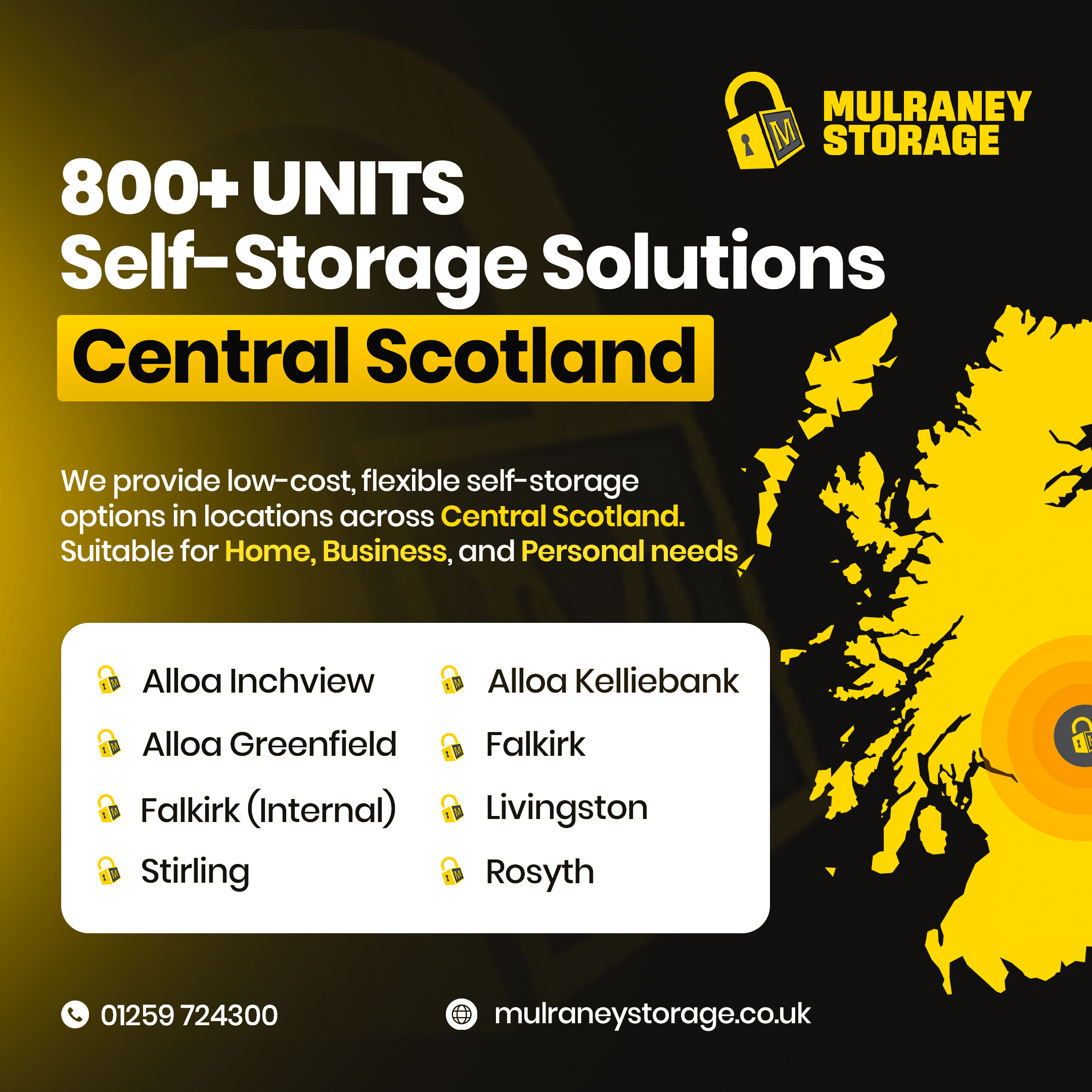 With convenient locations across Central Scotland and a range of unit sizes, Mulraney Storage gives you simple, stress-free storage on your terms. Choose short-term or long-term options and enjoy easy access whenever it suits you.